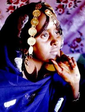 这个名叫雅哈拉·艾迪斯的新娘,身上配戴着从也门购买的全套新婚饰品,新娘雅哈拉·艾迪斯要等到生了两个孩子后,才能从这个家走出来。 一天下午,我和阿卜德拉正沿着提奥东边海滩漫步,无意中发现距海滩不足50米处有一间独立的草房,铺着新草席的墙上有许多童话般的图案和文字,看上去很有趣儿。阿卜德拉告诉我,房子的主人是一对年轻的新婚夫妇,新娘叫雅哈拉·艾迪斯,丈夫不久前从省城中学毕业,被分配到山里一个小学校当教师。据说,阿法尔女人自从结婚那天起,就禁止走出屋子,哪怕是自家的院子也不行。只有等她生了一个孩子之后才能到院子里干点活。直到她生了两个孩子,才能出去。 雅哈拉新房的后面是自己的娘家,她在这里出生和长大,爸爸已经去世多年,平时都是妈妈给她做饭,因为丈夫在外教书,三五个月才能回来一次。有时村里几个与她要好的女孩儿也会来陪伴她。 &n