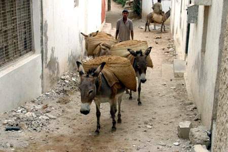 拉木城是拉木群岛行政区的中心。由于毛驴是其主要交通和运输工具,人们习惯称之为“驴城”。在导游的带领下,我领略了它的独特风情。“胡同一米宽,毛驴到处窜”是绝大多数游人对拉木城的第一印象。 其实,说拉木城没有街道,有些言过其实。至今,拉木岛上仅有两辆车:一辆是行政区专员的专车——越野车,一辆是县政府的拖拉机。遗憾的是,这两辆车只能在“滨海大道”或沙漠上通行。拉木古城因其道路过于狭窄而“谢绝”车辆入内。严格地说,拉木城里有胡同没街道,