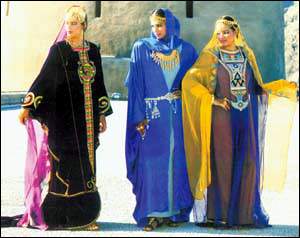 在人们的印象中,阿拉伯妇女穿长袍、蒙面纱,颇有几分神秘。然而,你要是以为她们一点也不化妆打扮,那可就完全错了。其实,阿拉伯妇女的长袍、面纱和丝巾也是颇有讲究的,如款式的选择、颜色的搭配、面料的讲究等,不一而足。 阿拉伯妇女爱美,还表现在她们对指甲花的大量使用上。指甲花是一种植物,地中海东岸一带十分常见。据史书记载,阿拉伯人很早就种植这种植物,并喜欢用它的汁液来染指甲和修饰自己。后来,指甲花演变成阿拉伯女性的专用化妆品,她们将指甲