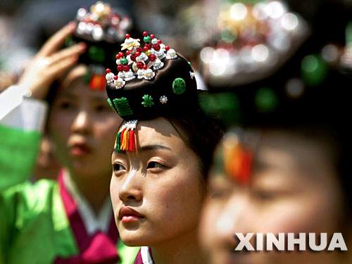 5月15日,一名身穿传统服装的女子参加在韩国首都首尔举行的*典礼。新华社发 |