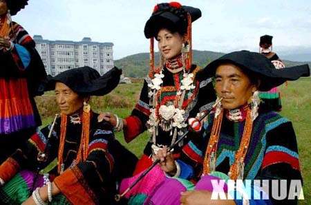 ![]() 按彝族的传统习俗,火把节要过三天,第一天清晨,男人聚集河边杀猪、宰牛、打羊分肉;妇女在家忙着煮荞馍、磨糌粑面,准备以后两天的熟食,这一天还有一项重要的内容,那就是每家要杀一只鸡,察看鸡舌、鸡胆、鸡股以占卜来年的吉凶,并烧鸡祭祖,祈盼阖家平安、牲畜兴旺。第二天,四乡八部的人们穿带节日的盛装从方圆几十里甚至上百里的山寨潮水般涌向青山