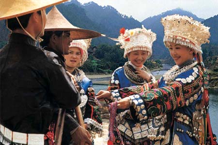 ![]() 每年三月十五的贵州苗族“姊妹节”,又称“姊妹饭节”,是指贵州省台江县、施秉县以及剑河县部分地区的苗族人民在每年春季由妇女们主持的吃姊妹饭的节日。具体时间又因地而异。节日礼仪古朴独特,最为典型壮观的要数清水江畔台江县施洞地区农历三月十五至十七的苗族姊妹节。 节日以青年女子为中心,邀约情人们相聚同吃姊妹饭、跳踩鼓舞、游方对歌、互赠信物、订立婚约,真实地展现人类社会由母系氏族社会向父系氏族社会变迁过程中男女情爱生活景象。此间,古老悠久的苗族歌舞服饰艺术、剽悍惊心的舞龙斗牛娱乐活动,宁静温馨的农家田间生活与追求返璞归真的现代旅游活动交织互动,被喻为“藏在花蕊里的节日”,是“最古老的东方情人节”,正成为大西南现代旅游经济的一道亮丽风景。 姊妹节的传说及流变 苗族姊妹节的范围较广,几百个村寨十几万苗族在礼仪习俗有所繁简或大同小异,在传说上也略有不同,究其来由的传说,主要有以下三种。 1.相传台江县的革一地区,有一个苗族大寨,寨子里的男子们每年都要到很远很远的地方去打猎,很久很久都不回来。寨子里还有众多的妇女孩子和七十个如花似玉的姊妹。妇女们劳动回来就养儿育女,过着她们永远也过不完的日子。姊妹们上山摘果与下田劳作,在家姊妹们还纺纱织布织锦与挑花刺锈,他们织出来的布箱子都装不完,他们织出来的彩锦啊,比天上的彩霞还美;他们绣出来的花,蜜蜂蝴蝶都飞来驻留,可是七十姊妹们总还觉得缺少了什么,心里总是畅快不起来,因为她们已经到了豆蔻之年了。 &