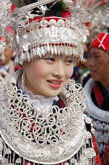 ![]() 老人们看出了姊妹们的心思,想出了一个好办法,建议她们把吃不完的糯米和喝不完的糯米酒保存起来,待来年春暖花开的时候,用精米制成糯饭,再到田里捉来鱼虾壳螺蛳设宴,招呼远方的青年男子前来吃姊妹饭、喝酒跳舞、交谊择偶。第二年确实通过这种形式,有部分妹妹还选上了如意情侣而高高兴兴地嫁出去了。以后吃姊妹饭便形成了一个特定的节日。 2.相传苗族从前居住在遥远的东方。后来由于人口增多生活困难和灾荒战乱,被迫不断往西方迁徙,而每逢到一个地方居住一段时间,就有一部分姊妹要嫁出去,再次迁徙嫁出去的姊妹就回不到家了。相见时难别亦难啊,于是他们决定在春暖花开的时节里,到田里捉来鱼虾,相邀已嫁出去的妹妹们回来和未嫁姊妹们相聚一起,吃一餐姊妹饭相诉衷肠,然后依依惜别,这样相习成了一年一度的姊妹节,俗语:吃了一餐姊妹饭,了却一年相思情。 3.姊妹节的传说,主要来自长达五百多行的《姊妹节歌》。相传,有两个姨妈的子女,男的叫金丹,女的阿姣,他们俩从小青梅竹马,两小无猜,长大后,彼此产生了爱情,金丹一定要娶阿姣,阿姣也非嫁金丹不可。但是,阿姣的父母要让她嫁回舅家(旧时苗家习俗称还