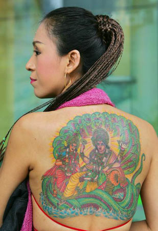 ![]() 在泰国,常能看到给人文身的地方。泰国的文身历史悠久,可追溯到13世纪,到16世纪的大城王朝时期,文身在泰国已相当盛行了。 传说,当时有两个泰国特使在法国宫廷,面对皇家卫队的枪脱去上衣,露出满身文身,请*们朝他们射击。一阵枪声后,奇迹出现了,子弹离开枪膛后即自动坠地。泰国特使安然无恙……如今,一些泰国人仍喜欢文身,不只为“摆酷”,还有个意义就是安身立命、保平安。 曼谷王朝时期,为防止平民逃避劳役和纳税,颁布