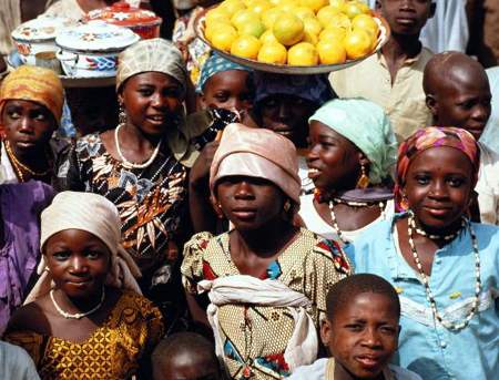 ![]() 赶集是坎巴里人的生活中不可缺少的一环。每逢赶集的日子,他们就会携带自家的粮食、陶器、土特产品、手工制品以及当地特产布鲁库图酒,从四面八方涌入附近热闹的集镇去进行形式简单然而非常必要的商品交换。按照坎巴里部族的规矩,男人不得用肩膀扛东西,而他们又不像邻近的豪萨族那样使用牲畜运货,所以一切负担都落到女子肩上。也只有在这种时候,女子才有机会出趟远门。 &n
