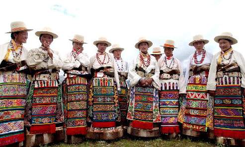 身着盛装的藏北妇女准备参加锅庄舞会&nbs