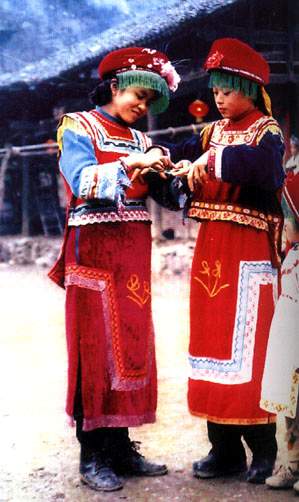 仡佬族因居住地区不同,饮食也不一样。山区以包谷为主食、平坝地区以大米为主食,其次是小麦、薯类等其他谷物。 服饰与汉族及邻近的少数民族大体相同。但在一百多年前,一些地区的妇女穿“桶群”。桶群分上中下三段,上下两段用麻织,间杂青百条纹,中间为羊毛织,染红色。脚穿尖钩鞋。上衣及腰部,袖、背绣花,上端开领口,穿时头顶往下套,称为“仡佬袍”。头挽发髻,花帕盖头等,这种服饰现代已不多见。
