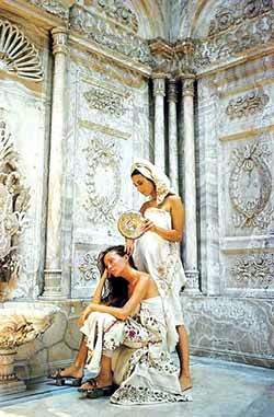 ![]() 土耳其浴早期是男女分开洗,后来演变成今天的男女共浴。如果到土耳其旅游,在当地人光顾的洗浴中心里能看到男女共浴。洗浴时,人们多半赤裸上身,下身围一块浴巾。在土耳其人眼中,土耳其浴池是真主的圣地,在真主的圣地清洗身体是没有任何顾忌和邪念的 土耳其浴对土耳其人来说,不仅仅是清洁皮肤的地方,还与人们的日常生活密切相关,有时婚姻大事也在浴池里决定。 |