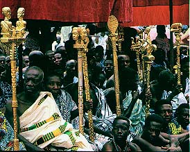 ![]() Asante是加纳最大的少数民族部落。黄金是部落权利、地位、财富的象征。他们开采金矿的历史,可以追溯到14世纪。Asante的金匠擅长铸造,而如今古老的铸金工艺品已不多见,因为大多数都被回炉重铸。 有一件古老的铸金工艺品在历经战争和殖民地时期后,被完好的保存下来,并被视为是部落灵魂的象征,这就是金椅。 &n