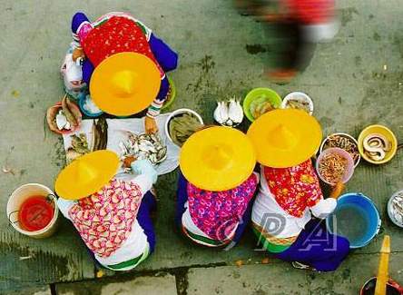![]() 每天在崇武做导游的惠安女谢聪慧都这样打扮自己,尽管她不太清楚这种服饰是谁传承下来的,但是惠安的女人视其为美,她也就穿上这种约定俗成的服装了。这种服饰是哪个民族的呢?仔细观察,人们会发现惠安女服饰的色彩与样式和中国许多少数民族的服装,有很多相似的地方。例如:她们戴上斗笠,有点像黎族人和京族人。她们短小的上衣,特别像云南西双版纳的傣族服饰。惠安女喜欢穿青色的上衣,黑色的裤子,从色彩上看,和云南水族的服装几乎是一样的。逢年过节妇女们都梳蝴蝶型的发式,因为蝴蝶是古代百越族崇拜的图腾,那么惠安女和古代百越族有什么关系呢?人们众说纷纭。确实是有人这样说,这种根据主要是有两个方面。一个就是在这个地区从1951之后的十几年间,发现了一些少量的古代百越民族生活的痕迹,在惠安女生活的大山乍村的