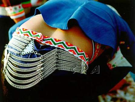 ![]() 惠安女下身穿的裤子,凡四、五十岁以上妇女多穿汉装“旷(宽)裤”,年轻妇女多穿裤管宽大的西装裤,用黑色线布或尼龙布制成。腰部扎有红、蓝色塑料裤带,已婚者常加上银裤链,宽度由一股至八股不等,以多股为佳。裤式腰围小、臀围大,裤筒仅为三十厘米,既美观又便于劳动。 ![]() 此外,年长的惠安女还有在门牙两侧各镶一颗金牙做装饰的习俗,现已不再盛行。 崇武一带的男子多出外谋生或出海打渔,惠安女自然成了建设家乡