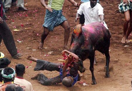 ![]() 1月26日,再印度南部的泰米尔纳德邦马杜赖区,一头愤怒的公牛在追赶一名男子。奔牛活动是为期四天的印度奶粥节的一部分。奶粥节是印度南部印度教徒的重要节日,也是泰米尔人的节日。 页码:[1] 第1页、共1页