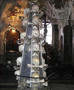 查明人骨教堂(Kostelík Vech savtych a kostnicí )的捷克文后,我们就到St. Barbora’s Cathedral后的公车站等车。 上车后,开了很久,车子在一个路口的教堂停了下来,不过司机及车上的伯伯们说这个教堂不是我们要去的,人骨教堂在左边的巷子进去。谢过大家之后,带着一颗兴奋的心下车啰! 巷子的尽头是一个小型教堂,教堂的四周都是坟墓,不晓得该怎么形容当时的感觉,说阴森也不尽然,说庄严似乎又构不上边