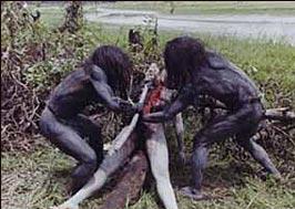 ![]() 食人族,就是吃人肉的人,确实存在。长久以来,语言中的故事和道听途说,都被证实是事实,证据来自于哥伦布第二次穿越太平洋的探险中,所有船员的亲眼所见。随船医生在家书中提到了一些阿拉瓦克俘虏,叙述了在一个小岛上发生的食人故事,这个小岛就是今天的瓜得鲁普。 当地居民中的一些妇女曾经做过岛民的俘虏,我们向他们询问,那些岛民是怎样的人,他们回答“加勒比人。”他们一听说我们憎恶这种人吃人的罪恶行为,感到非常高兴……他们告诉我们,加勒比人对待他们的残忍程度,使人难以置信;加勒比人吃掉他们的孩子,只抚养自己的女人所生的孩子。 凡是活着的男性俘虏都被带回去