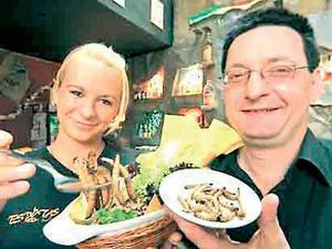 ![]() 天下之大无奇不有,令人作呕的蛆竟然上了德国人的菜谱,成为大受欢迎的盘中美食。日前,一家名不见经传的德国餐馆把恶心的蛆搬上菜谱,别出心裁地推出美味绝伦的“蛆大餐”! “蛆大餐”大受德国人欢迎 据报道,这家隆重推出“蛆大餐”的德国餐馆名叫“埃斯皮塔斯”,坐落在德国的德累斯顿市,可以说是一家名不见经传的小餐馆。 不久前,这家不起眼的小餐馆竟然出人意料地把令人恶心的“蛆”搬上了菜谱,别出心裁地创造出许多以蛆为主的美味,如蛆冰淇淋、蛆色拉、蛆鸡尾酒等,让德国人耳目一新,顿时成为大受德国人欢迎的盘中餐。