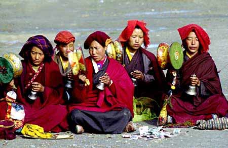 在虔诚地将毕生奉献给藏传佛教信仰的信徒中,不仅有那些强悍的男性,还有一些纯洁温柔的女性。她们被称作尼姑。她们远离尘世,在门闩紧闭的尼庵(尼姑寺)中苦读经文、虔诚祈祷、恪守戒律、自我磨难,努力以一颗圣洁之心,去叩响她们理想中的“超然世界”之门…… 在西藏,有很多寺庙,其中喇嘛庙居多,尼姑庵较少。但也有一些挺有名的,如在拉萨就有米米钦热寺(遗址)、嘎丽寺、朗古寺、仓宫寺和阿乃昌库寺等尼姑庵。.改革前,西藏的尼姑庵常常是人满为患,近年来不但有许多旧日的尼姑重返尼姑庵,而且还有一些年轻姑娘和*进庵削发为尼。 在尼姑庵修行的尼姑,有的来自贵族或富商之家,有的来自破落的名门,有的来自平民百姓之家。一个女孩到尼姑庵修行,首先要找一位老尼当规范师,负责对她道德品行方面的教育和管理。再请著名的活佛替她剃度,活佛祈祷念经后,剪去小女孩头上最后一