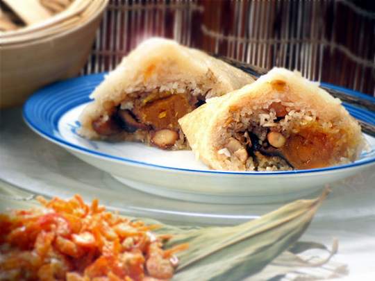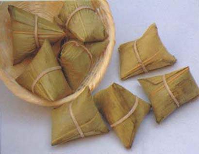 ![]() 新加坡人都很爱花,每当有客人来访时,主人都会送上几束花,且还会端来花汁浸染的粽子请客人来品尝。这种花汁粽子是用绿叶包成多角形状,只有鸡蛋那么大小,展开绿叶後,面的粽子是由花汁染成淡绿色的米粉精而成的,色泽诱人,吃起来味道清香可口。 马来西亚,人们所做的粽子与广东一带的粽子有点相似,除了较常见的鲜肉粽子和火腿粽子等品种外,还有豆沙和椰蓉等几种粽子,香甜可口,美味醇香。 ![]() 印度尼西亚人对粽子馅要求特别讲究:有猪肉馅、牛肉馅、鸡肉馅,有腊肉馅、火腿馅,还有广味香肠馅、虾肉馅、鱼肉馅。印尼粽子是用粳米做的,较之糯米容易消化,加上竹叶诱人的香气,很能引起人们的食欲。 菲律宾粽子是长条形,风味与中国浙江一带的粽子相同。粽子是菲律宾人过圣诞节必不可少的食物。 泰国人在每年4月泼水节或7—9月雨季时吃粽子。泰国粽子以甜味为主,包粽子前,先将糯米泡在椰汁,使之具有椰味清香。粽子馅用椰子、黑豆、芋头、地瓜等做成,外形小巧精致,泰国粽子有蒸、烤两种吃法。