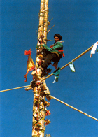 时间:2026/3/30 19:54:32来源:不详 ![]() 居住在云南保山地区腾冲、龙陵县的傈僳族,性格粗犷豪爽,每到农历二月初七便举行惊险的刀杆节。 二月初七这天,腾冲古永、瑞滇、明光的傈僳族男女不约而合,云集在轮马、胆扎等地,他们一个个沐浴净身,穿戴一新。夜幕降临,山寨平地中燃起一堆巨大的篝火,当篝火熊熊燃烧时,男女老少便围着篝火,情不自禁地跳起古老的民族舞来。待篝火燃尽,篝火堆上形成了一个炭火红红的火塘,这时,刀杆节的第一个节目“下火海”便开始了,只见精壮的傈僳族汉子们,光着脚,穿着黄衣黄裤出现在人前,他们豪饮数杯酒便闪身跃人300摄氏度的余火之中。顿时,无数火星缤纷四溅,令人叫绝,让人眼花综乱,惊讶不已。表演完毕,只见表演者一个个安然无恙,无一人受高热的伤。 ![]() 次日中午,“刀杆节”第二个项目“上刀山”便开始了。众目之下,竖起一根高约五层楼的青冈栗木,栗木上一把把户撒刀锋刃向上,寒光闪闪,形成一架高得叫人望而生畏的72层刀梯。上刀山仪式开始,几个傈僳汉子神情豪迈地奔出,一齐跪倒在一幅古代武将(据说是明朝兵部尚书王骏)的画像前,然后双手举杯过头,口中念念有词,接着他们将酒一饮而光,然后一个个赤脚踏着锋利的刀口向上爬,当爬过72层刀梯到顶部时)人群中顿时响起一片喝彩声。 到达顶部的英雄们,点燃鞭炮,宣告自己攀登成功,又把一面面小红旗掷向四方八面,祝愿傈僳儿女大吉大利。然后,他们又从容地脚踩锋利的刀刃,一台台次第而下,待他们平安站立在草坪上时,人们看到,他们一个个神情自若,皮肉无一损伤。令人百思不得其解。