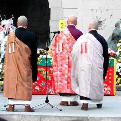 ![]() 大多数日本和尚过的日子堪称“两亩地一头牛,老婆孩子热炕头”。后半句刚才已经交代了。“两亩地”,指的是日本的和尚大多靠“地”吃饭。日本的庙宇多经营墓地。日本地价高昂,一块2—3平方米的墓地价格就在七位数,靠出售墓地和每年收取墓主的功德钱,就可以让大多数和尚过上悠闲自在的生活。 与此相关的费用还包括做法事,为死者获得佛教徒称号等。“一头牛”,就是指和尚们做法事的座驾了,城市里的和尚多有很好的汽车,而郊区乡下的和尚则偏爱小摩托。 恪守修行立街边 当然,也有恪守佛门修行要求的,最典型的就是在日本各地随处可见的“托钵僧”。他们不到施主家门前去恳求布施,而是选择繁华的车站、广场等地,戴上斗笠穿上僧袍,端然一立,便不再作声。看到这样的僧人不时有人加以布施,而每得布施,托钵僧便报以法铃一声。这样的托钵僧人,也成了日本城市的一道风景。