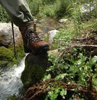 选择了岩地行走,包括跳跃。V底的质量大家都知道,硬度一流。但此次也确实证实了防滑度差。遇到有水的岩石尤其是粘满青苔的地方,还是要小心通过。