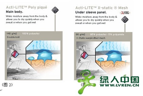 主体,保证了良好的排汗和透气性,后者则是使用知名的“X-STATIC”银纤维,腋下大面积的使用,提供了持久的抗菌抗异味作用,保证了在野外大运动量长期穿着的舒适性。