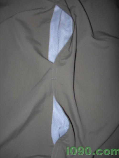简单说说这款衣服的设计。背部在两侧和上面都有透气网。两侧的透气网没有使用魔术贴,个人觉得这个设计还是不错的,省去了很多累赘。有些速干衣这个地方仍然采用了魔术贴,这个地方的魔术贴基本上没有什么太大的用处,因为即使是休息的时候谁也不会想到把后背的魔术贴拉开通风,即使拉开了通风用,在没有向外扯的情况下,魔术贴会自然的粘合在一起,和没有拉开是一样的效果,即使真地用手拉开,难道还要侧身站在迎风面上等着风往那个缝里吹不成?