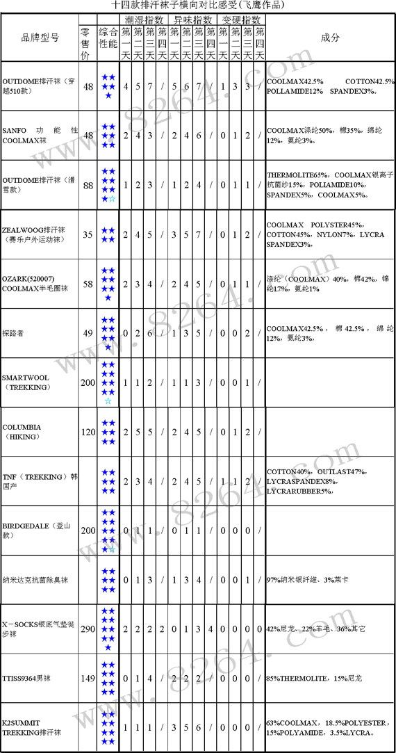 飞鹰测试--十四款户外袜子横向对比及感受[组图]