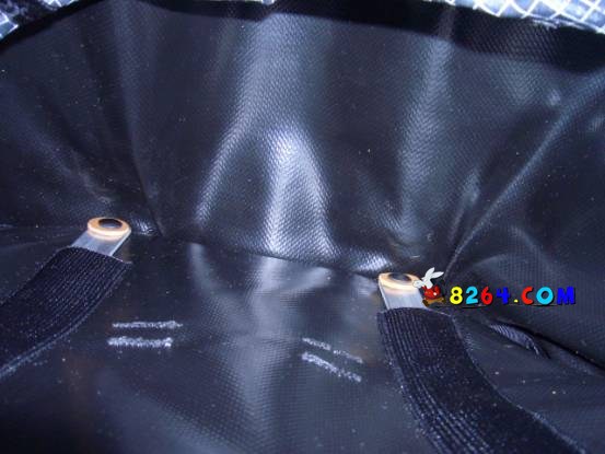 6、承托架,由二条19mm 7001-T6 铝杆组成,减轻重量的同时又具有高弹性和有高承托力。铝条穿入织带连接包身和承托板,下部通过螺丝铆钉链接下承托板
