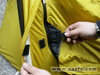 新款的小细节做的也更加的细腻了,上图为为拉链挡雨的前门蓬.