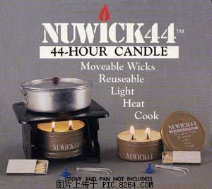 这也是一个好玩东西。为什么?它是蜡烛,炉子兼用的玩意,做蜡烛,可以点44小时。多放几个灯心,就变成了炉子。呵呵。10美金。不过我似乎看到过2美金的。 ![]() http:/www.outinstyle.com/page/ois/PROD/SurvivalGear/SP678