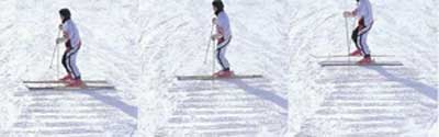 1. 雪板保持平行,与斜坡呈90度。