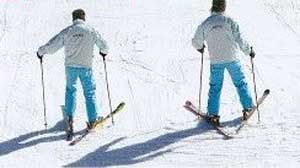 稍具滑雪程度,可尝试开脚登 (八字上,如图)