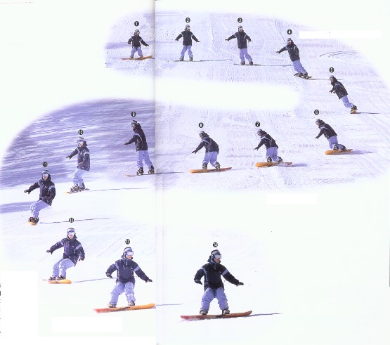 将斜滑降到转弯练习中的面谷转面山及面山转面谷衔接起来,就是完整的连续转弯。 连续转弯