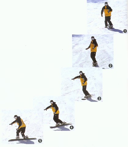 练习坡度最好在5度之下! 面山 (heel side)练习