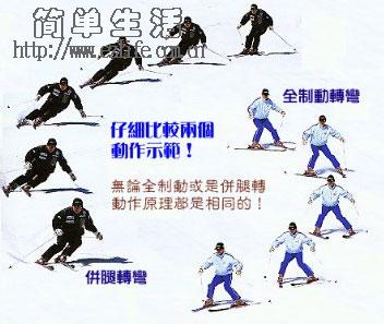 刚开始练习并腿转时,不妨把两只雪板的间距拉大,与肩同宽都是可接受的。如此一来不但重心会较稳定,滑行速度也会因为雪板之横滑增加而减慢速度。在练习阶段,速度能慢就尽量放慢,否则很容易会因为紧张而导致"不完全转弯"的发生。再一次叮咛;从大回转开始你的并腿转哦!