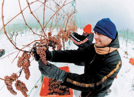 TIPS: 一般说来,冰酒指的是用采摘时已经冻硬的葡萄酿造出的甜白葡萄酒。但在正宗冰酒产地加拿大、德国和奥地利,冰酒定义强调的葡萄必须是自然冰冻的。 其中德国对冰葡萄酒的定义最为严格。 德国在相关标准中规定,“酿造冰酒所用的葡萄必须在架上,在低于-8℃的自然条件下冰冻6小时以上,再经人工采摘,在- 8℃完成压榨,然后将压榨出的浓缩的葡萄汁发酵,从而产生的葡萄酒,才能标注‘Eiswein’”。 奥地利的四个地区都能生产出冰酒: Wa c h a u出产的冰酒是最被消费者追逐的冰酒,也是真正有资格,具有陈放价值与潜力; Burgeland产区的冰酒香气精致、讨人喜欢; Styrie产区的冰酒香气高贵,入口比较爽洁; Vien ne(维也纳)产区的葡萄林遍布于山丘之上,被著名的维也纳森林包容着,这里的冰酒也像维也纳的音乐一样容易打动人们的最深处。
