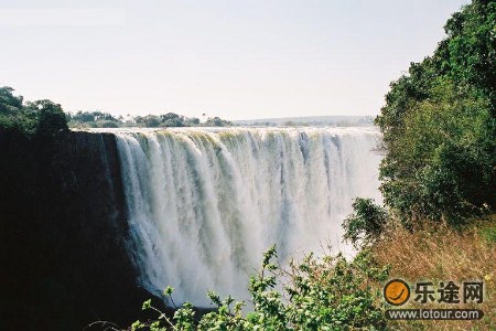 景区介绍 维多利亚瀑布是世界上最大的瀑布之一,位于构成赞比亚和津巴布韦之间国界的赞比西河上,赞比西河上游缓慢地流经宽浅的谷地,在离瀑布40--65千米处,人们可看到升入300米高空如云般的水雾;在见到瀑布前的远方,将听到水的轰鸣声。当地称该瀑布为“莫西奥图尼亚”,意思是“雷鸣之烟”。