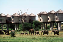 景区概况 山上树木葱茏,动物成群,有大象、狮子、犀牛、豹子、狒狒、各种猴子、豺狗、羚羊、野牛、水羚羊、野猪以及250多种鸟类。象群和水牛群在大树下的低矮林丛中悄声走过,头上的树冠则被吵闹的鸟类和疣猴所主宰。夜晚的森林生机勃勃,蹄兔的叫声和豹子的嗥叫在林间回荡,野生动物成群结队地从密林中走出,象群围绕着水池喝水,公水牛为争夺疆域而