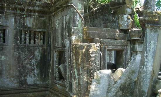 崩密列的护城河长1.2公里,宽0.9公里,它和吴哥寺几乎一样大的规模,但依然被丛林严密包裹着。由于比较荒僻,所以很多浮雕和塑像已被掠夺,但寺庙的神秘气氛仍旧在森林深处弥漫。