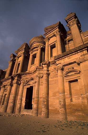 修道院是佩特拉规模仅次于卡兹尼的建筑,是那霸田人沿山劈凿而成的一座神殿或皇家墓室,在罗马和拜占庭时期被作为修道院,正面宽50米,高45米,前面有8根巨大石柱,是佩特拉最大的石凿建