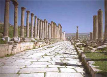 整齐的科林斯式石柱得名,其实这些石柱是悬空水道的支柱,水从城北的山上引来,沿水道流入喷泉、浴室供居民使用,石板街下面有排水道,街面上每隔一定距离设有圆型排水孔。这可能是最早的城市供水系统了。