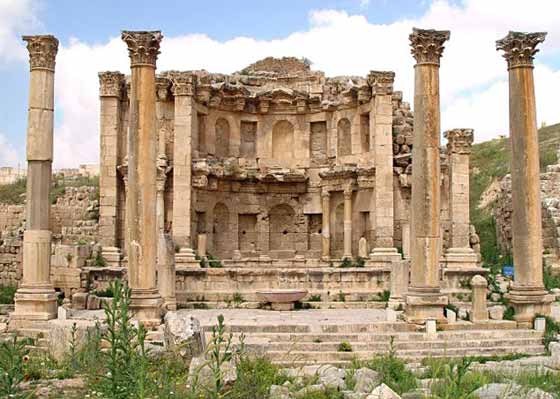 在水神殿左侧有着高高的阶梯,这里是从前的人要去朝拜月神庙的入口,只是现在的游客大多绕道而行。沿水神殿左侧的阶梯向上,就是杰拉什另一重要建筑月神庙。