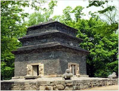 芬皇寺内除模砖石塔外,还有建寺后一直使用至今的井至三龙变鱼井,还有几处石制的文物。