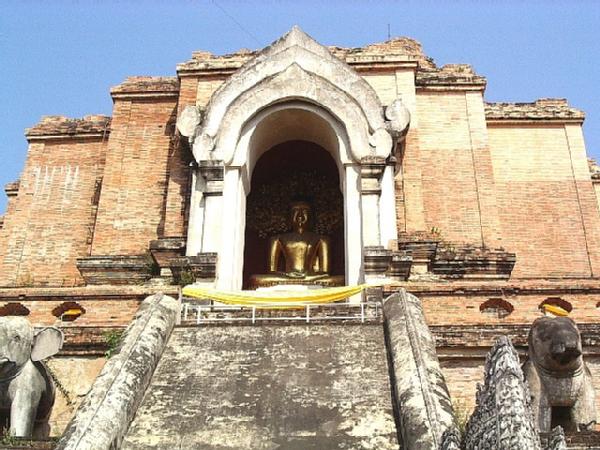 但是此寺的重点景点是屋后少见的的圆锥型7 层塔,西元1517年建造,塔上有52个佛龛,里面坐着冥想佛,可能受到中国式宝塔的影响才有此形状,基层还有一圈陶瓷装饰呢!