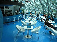 相当前卫,是当地人的时髦去处;晚上咖啡馆就成为气氛迷离的酒吧,加上灯光从帷幕透出,整座建筑光彩夺目。更神奇的是,穆尔岛还可以随着水位高低而升降,看起来就个一颗在河上游动的闪闪发亮的大贝壳,炫丽灿烂。