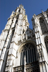 建于1352年的圣母大教堂Onze Lieve-Vrouwkathedraal是比利时最高的哥特式教堂,用了169年才基本建成。教堂内保存有很多宗教题材的绘画,包括鲁本斯的杰作祭坛画《耶稣的升架》、《耶酥的下架》和《圣母升天》等。 教堂的钟楼高123米,被誉为“中世纪的摩天大楼”,是船只进入安特卫普