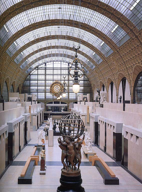 奥赛博物馆座落在塞纳河的左岸。原来是奥赛火车站,七十年代被改建为国家博物馆,陈列从拿破仑三世到立体主义兴起之初长达近半世纪的艺术作品。它是联结古代艺术殿堂卢浮宫和现代艺术殿堂的蓬皮杜中心的完美的中间过渡。 现有艺术收藏4千多件,其中包括绘画,雕塑,以及家具陈设等,展出面积超过4万5千平方米。底层展出的是1850年至1870年的绘画,雕塑和装饰艺术作品,其中有凡高、高甘、安格尔、德拉