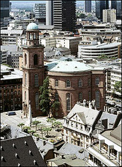 景区介绍 法兰克福大教堂是一座哥德式建筑。由罗马广场东侧穿过半木造市民住宅,可以看到法兰克福大教堂,是13至15世纪的哥德式建物,又称为“皇帝大教堂”(aiserdom),因为是德国皇帝加冕的教堂。从14世纪迄今,已有600年的历史,虽几经战火,仍能幸免于难。在1562-1792年间神圣罗马帝国的加冕典礼即在此举行,在教堂的宝库内陈列有大主教们在加冕典礼时所穿的华丽衣袍。
