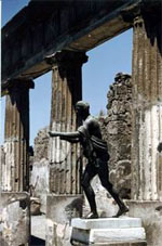 景区介绍 从马利纳门沿坡道而上,首先抵达的是阿波罗神殿中心广场,也称公共广场(Foro),这里曾经是昔日庞贝的*、经济、宗教中心,广场上的方形会堂(Basilica)还残留着一些砖砌的圆柱底座,此处是以前的法院与商业交易场所。会堂的对面是一座阿波罗神殿(Tempio di Apollo),里面的48根科林斯式的圆柱保存完好,还有许多精美的壁画。广场北侧有一座背对着维苏威火山的丘比特神殿(T