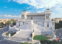 景区介绍 威尼斯广场(Piazza Venezia)位于罗马市中心的圆形广场。这个广场的正面是绰号叫“结婚蛋糕”、“打字机”的白色大理石建造的新古典主义建筑:维克多·埃曼纽尔二世纪念堂。为了庆祝1870年意大利统一而建造的纪念堂,耗时25年才建成。16根圆柱形成的弧形立面是它最精彩的部分,台阶下两组喷泉寓意深刻:右边的象征第勒尼安海,左边的象征亚得里亚海,中央骑马的人物塑像就是完成了意大利统一大业的维克多·埃曼纽尔二世。建筑物上面有两座巨大